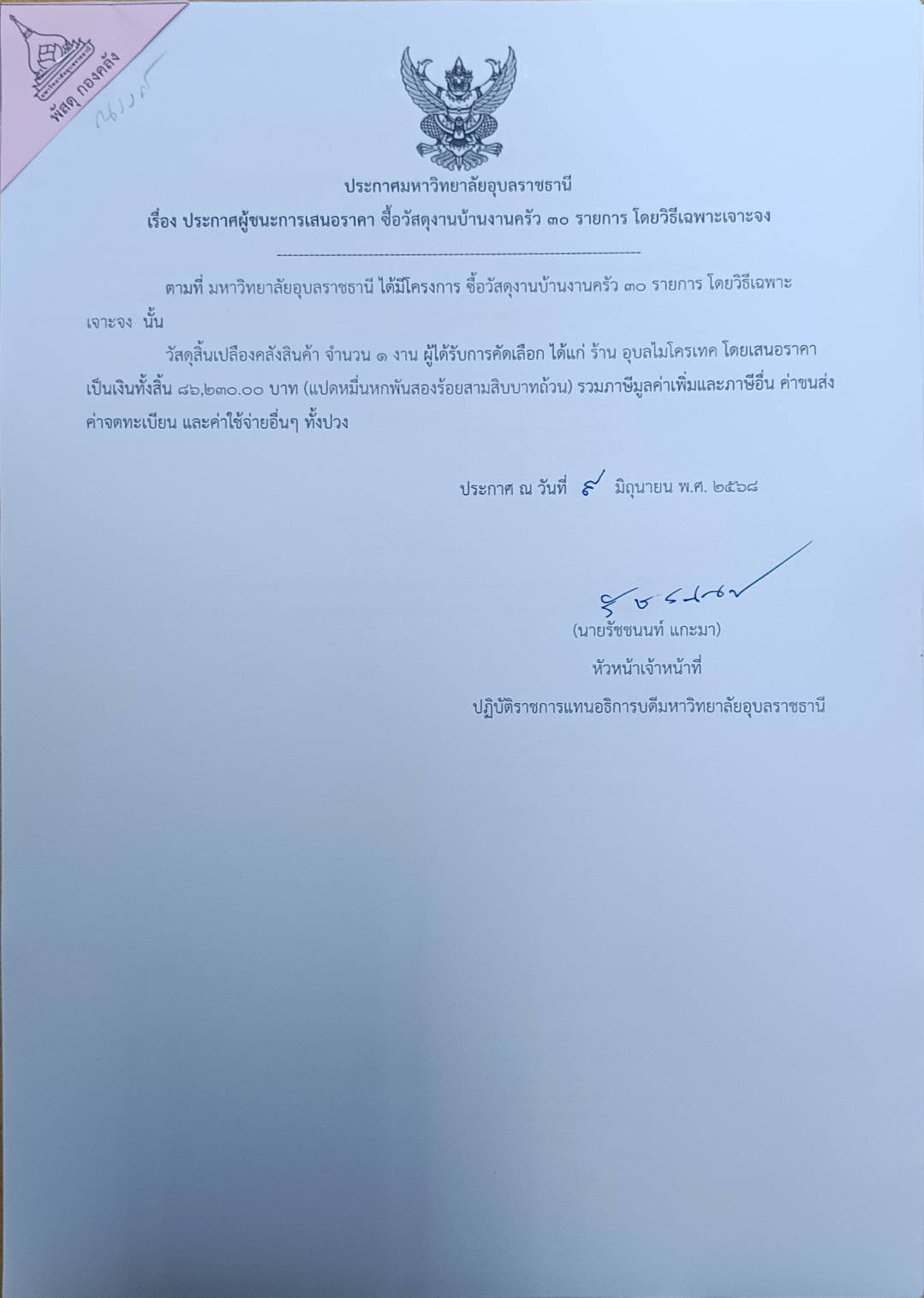 ประเภทข่าว : / ประกาศผลการจัดซื้อจัดจ้าง / งบดำเนินงาน ประกาศข่าวโดย : นายพงศ์ปณต ทองแท่น / สำนักงานอธิการบดี ประกาศวันที่ : 13-06-2568 งบประมาณ : 86,230.00