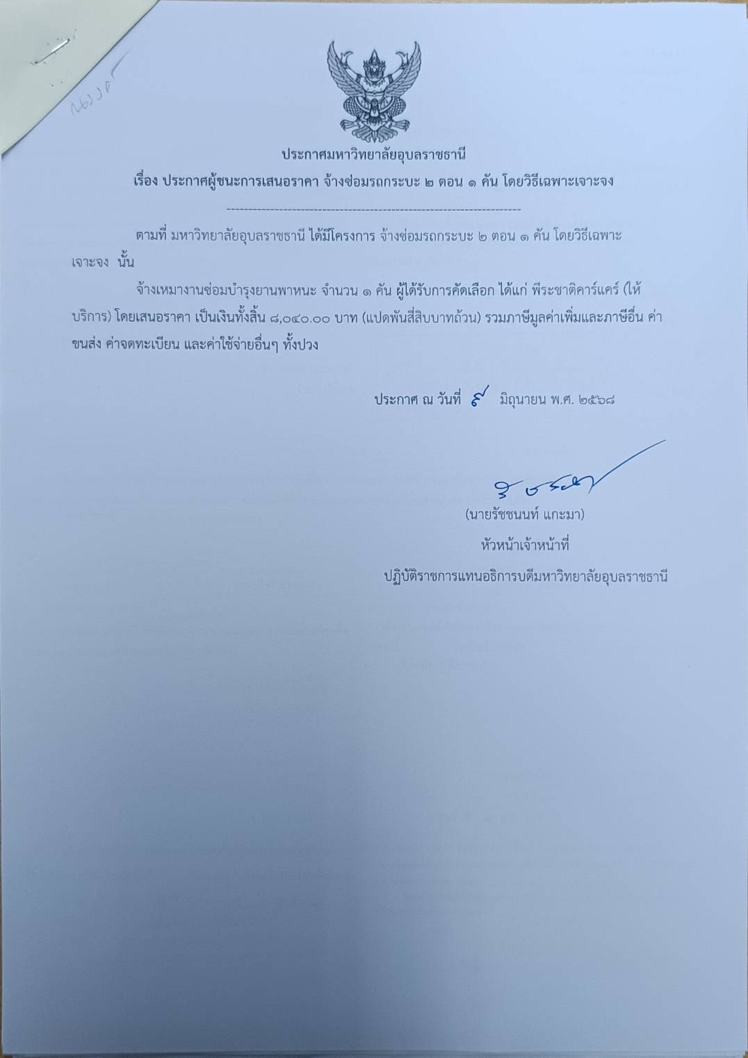 ประเภทข่าว : / ประกาศผลการจัดซื้อจัดจ้าง / งบดำเนินงาน ประกาศข่าวโดย : นายพงศ์ปณต ทองแท่น / สำนักงานอธิการบดี ประกาศวันที่ : 13-06-2568 งบประมาณ : 8,040.00