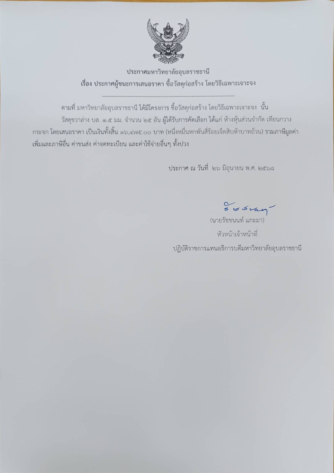 ประเภทข่าว : / ประกาศผลการจัดซื้อจัดจ้าง / งบดำเนินงาน ประกาศข่าวโดย : นายพงศ์ปณต ทองแท่น / สำนักงานอธิการบดี ประกาศวันที่ : 02-07-2568 งบประมาณ : 16,475.00