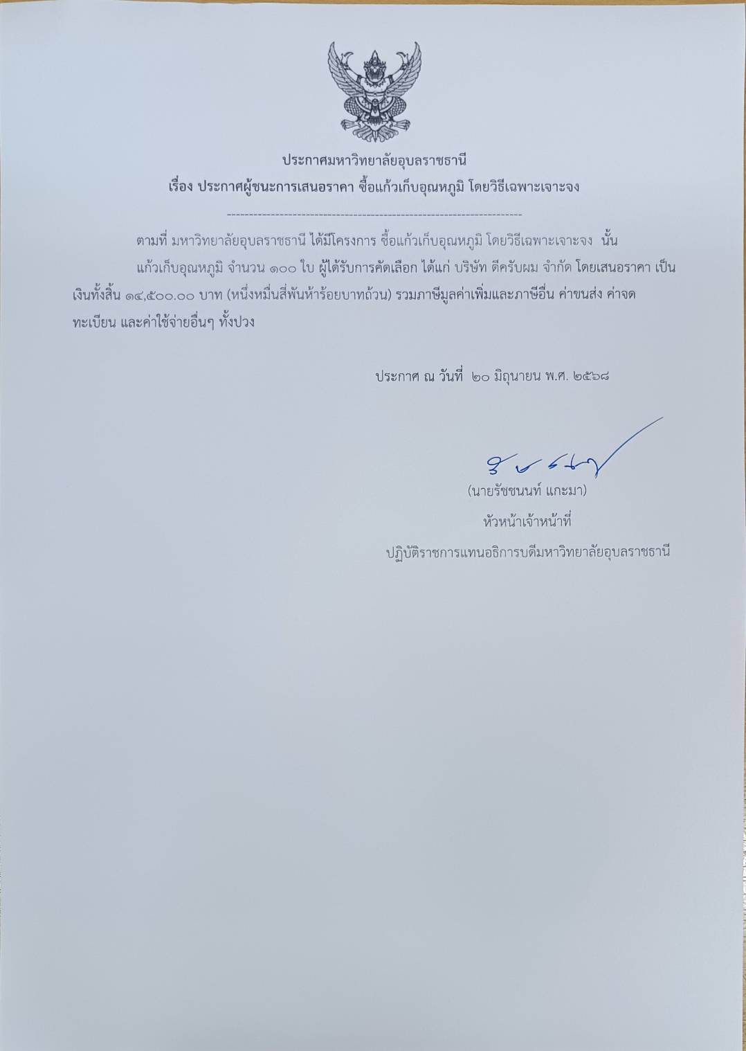 ประเภทข่าว : / ประกาศผลการจัดซื้อจัดจ้าง / งบดำเนินงาน ประกาศข่าวโดย : นายพงศ์ปณต ทองแท่น / สำนักงานอธิการบดี ประกาศวันที่ : 02-07-2568 งบประมาณ : 14,500.00